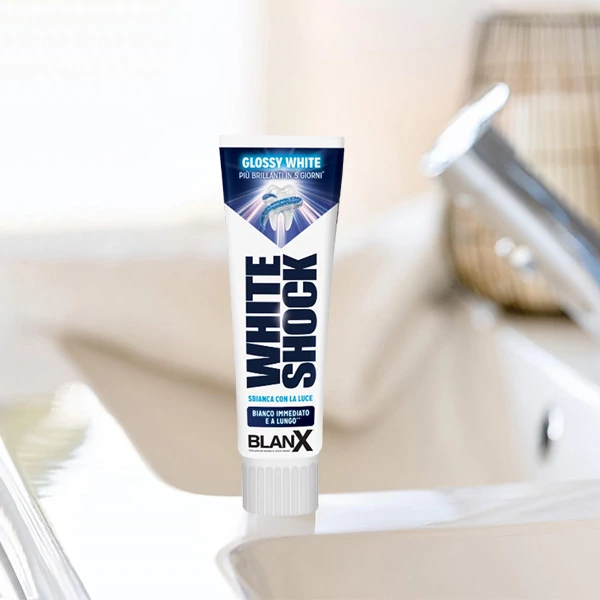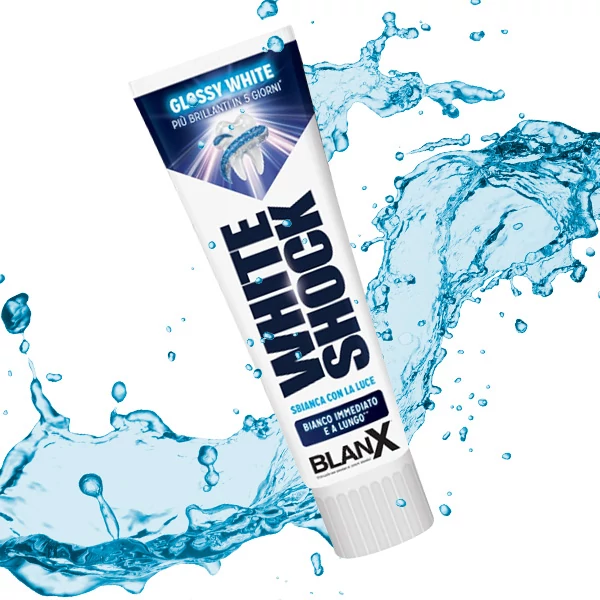 BLANX White Shock - інноваційна відбілююча зубна паста, розроблена для ефективного та безпечного догляду за зубами. Вона підходить для щоденного використання та дбайливо впливає на емаль завдяки унікальній технології ActiluX®, яка активується світлом. Це дозволяє пасті освітлювати зуби з кожною посмішкою, не викликаючи чутливості.